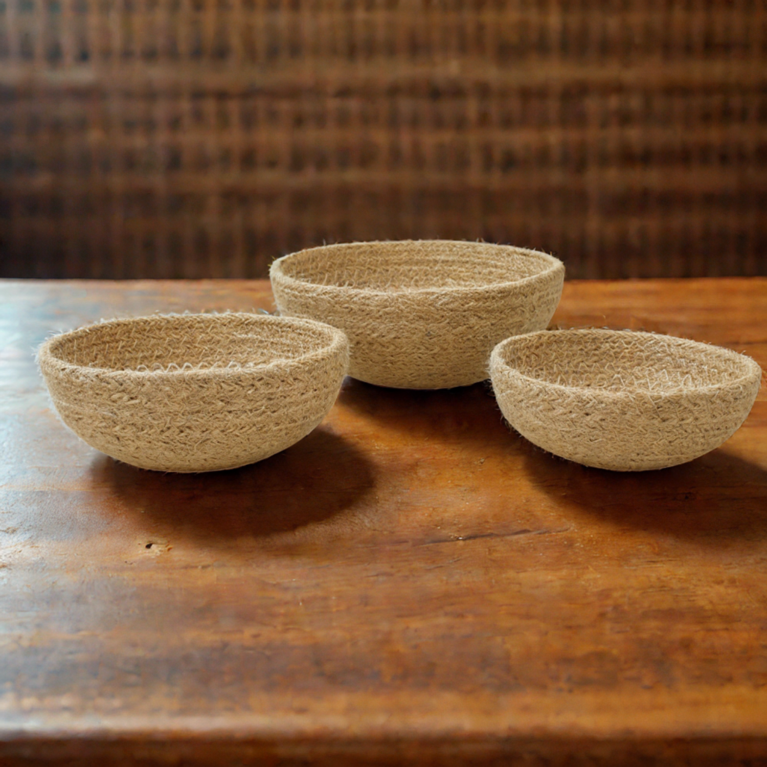 Elevate your storage solutions with our charming Natural Jute Mini Bowl Set. Crafted from sustainable and ethically sourced jute, these nesting bowls blend functionality with eco-friendly design, making them perfect for organizing your space.