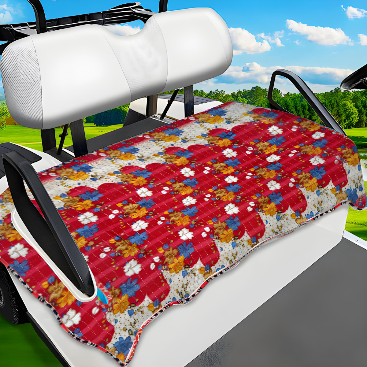 Each cover is crafted from soft, recycled sari fabric, offering not only sustainability but also versatility. Designed to suit every mood, these double-sided seat covers keep you cool during the summer and cozy in the cold. Elevate your golfing experience with a touch of handmade elegance, while enjoying year-round comfort and eco-conscious luxury.
