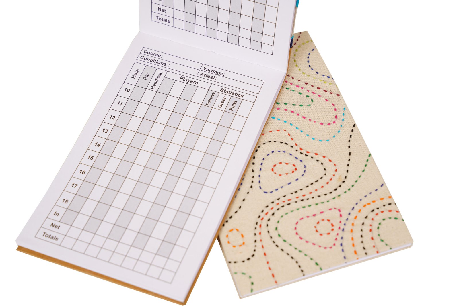 Our unique designed multi-Color Golf Notebook Pocket Size includes a sturdy scorecard cover with a design of golf course pattern.