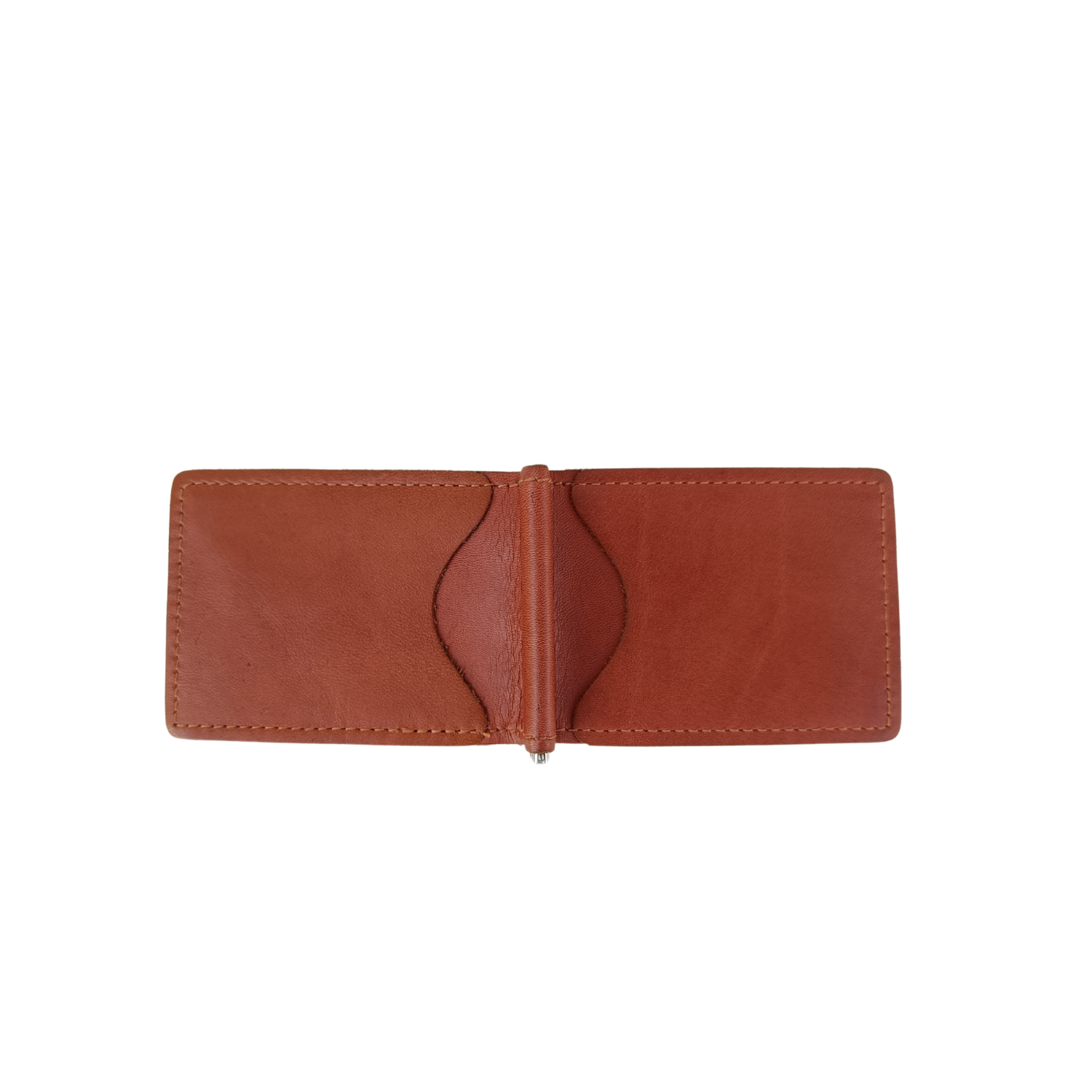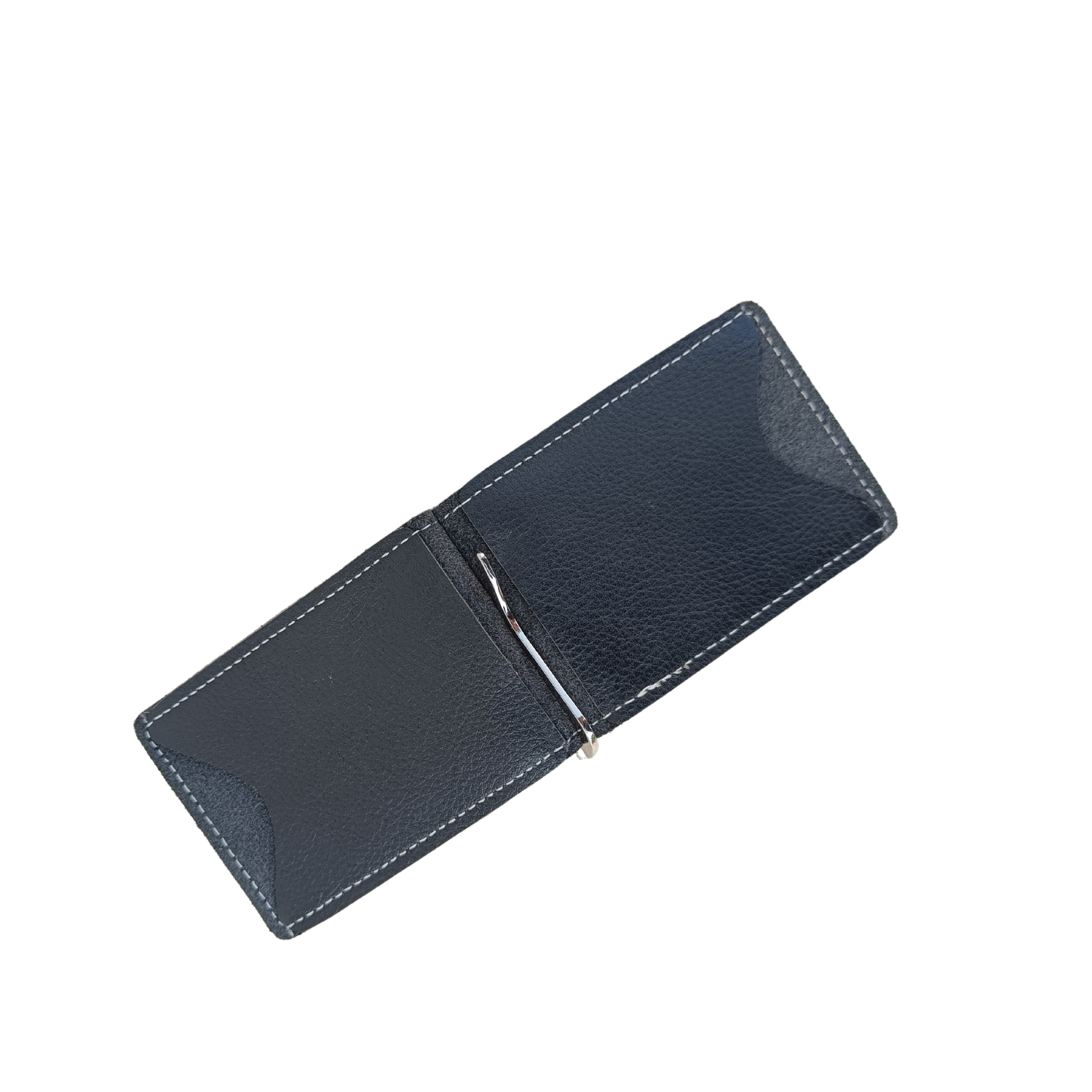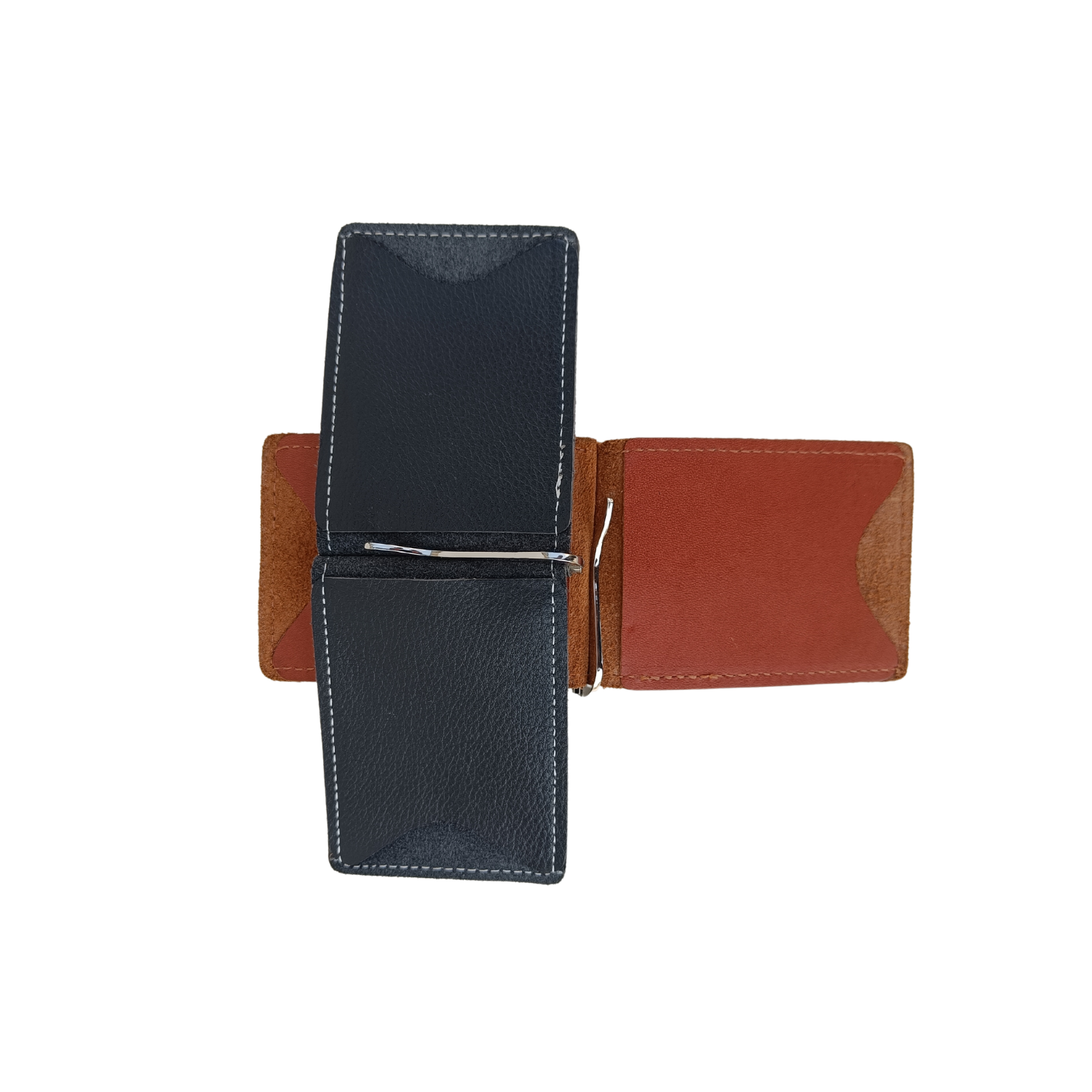Equipped with a sturdy spring money clip to keep your bills in place, this wallet also includes a card holder with four leather slots—two inside and two outside—each able to store multiple cards. Minimalist style without compromising on functionality.